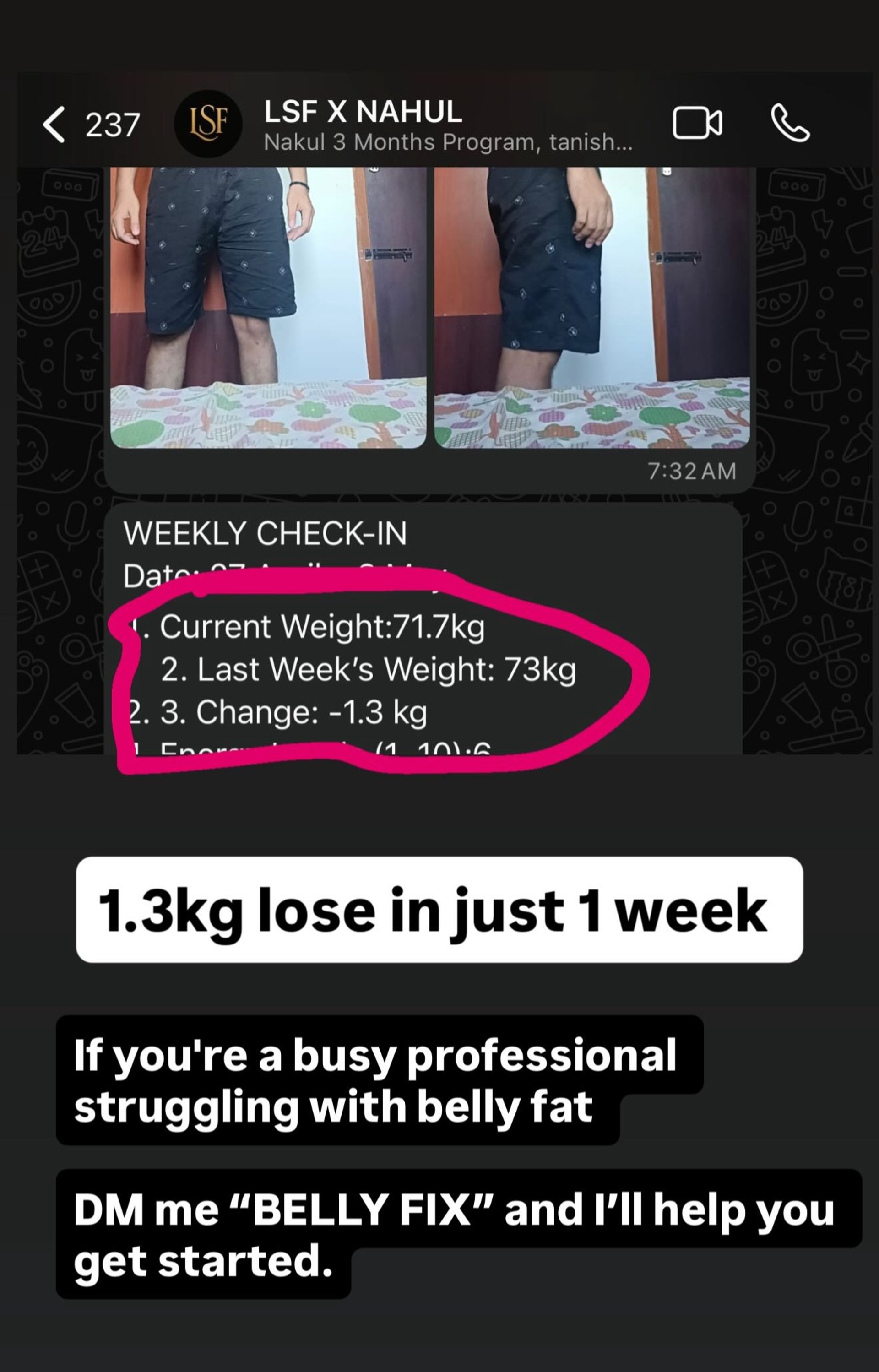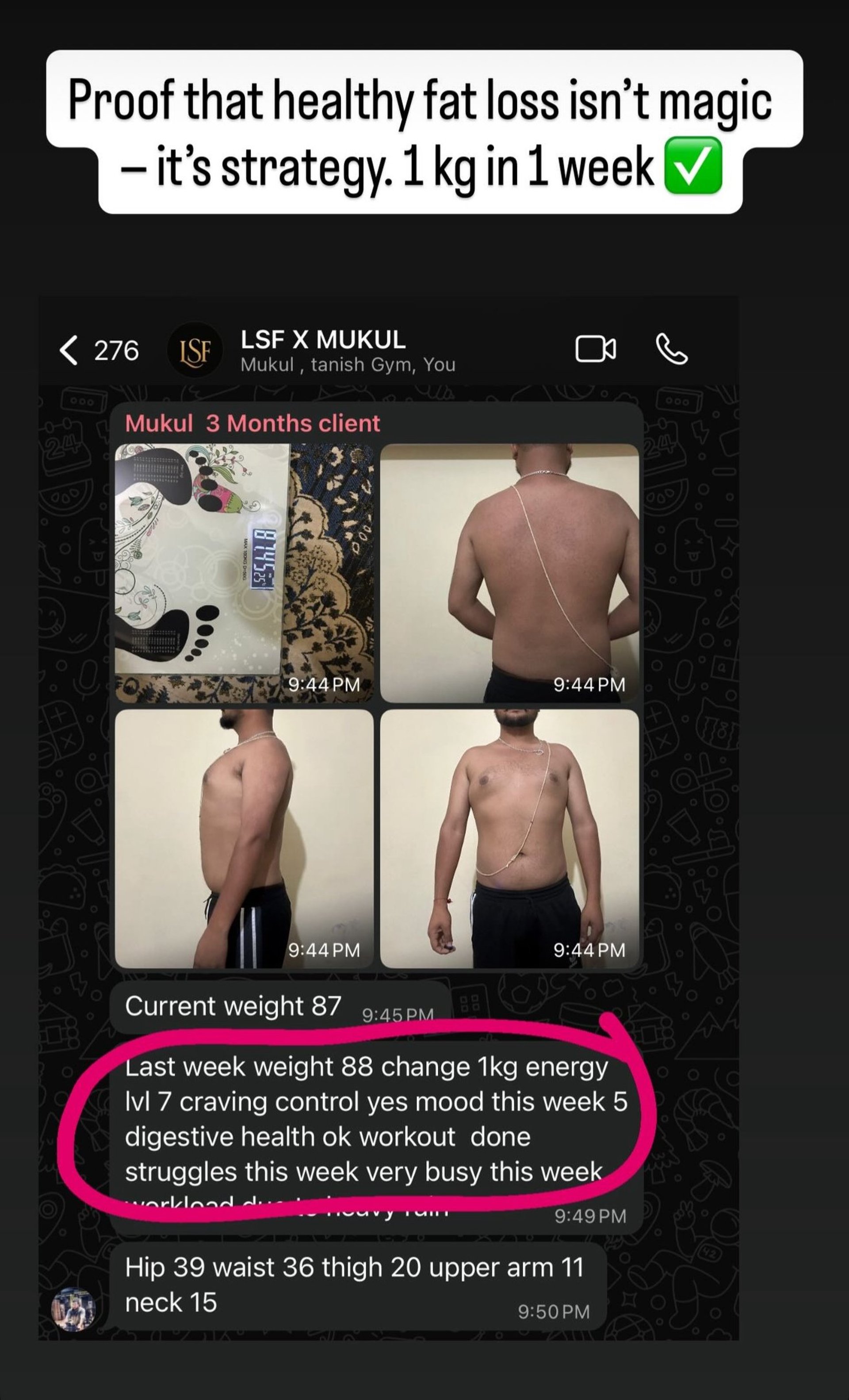Weekly check-in, progress photos